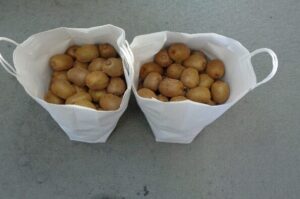 小さな子どもたちも一生懸命キウイを収穫し、籠が一杯になると神社に持ち帰り、ビニール袋にキウイをどんどん詰めます。今年は、持ち帰りのキウイをひとり25個としましたが、ほとんどの方が袋いっぱいに詰ることができました。